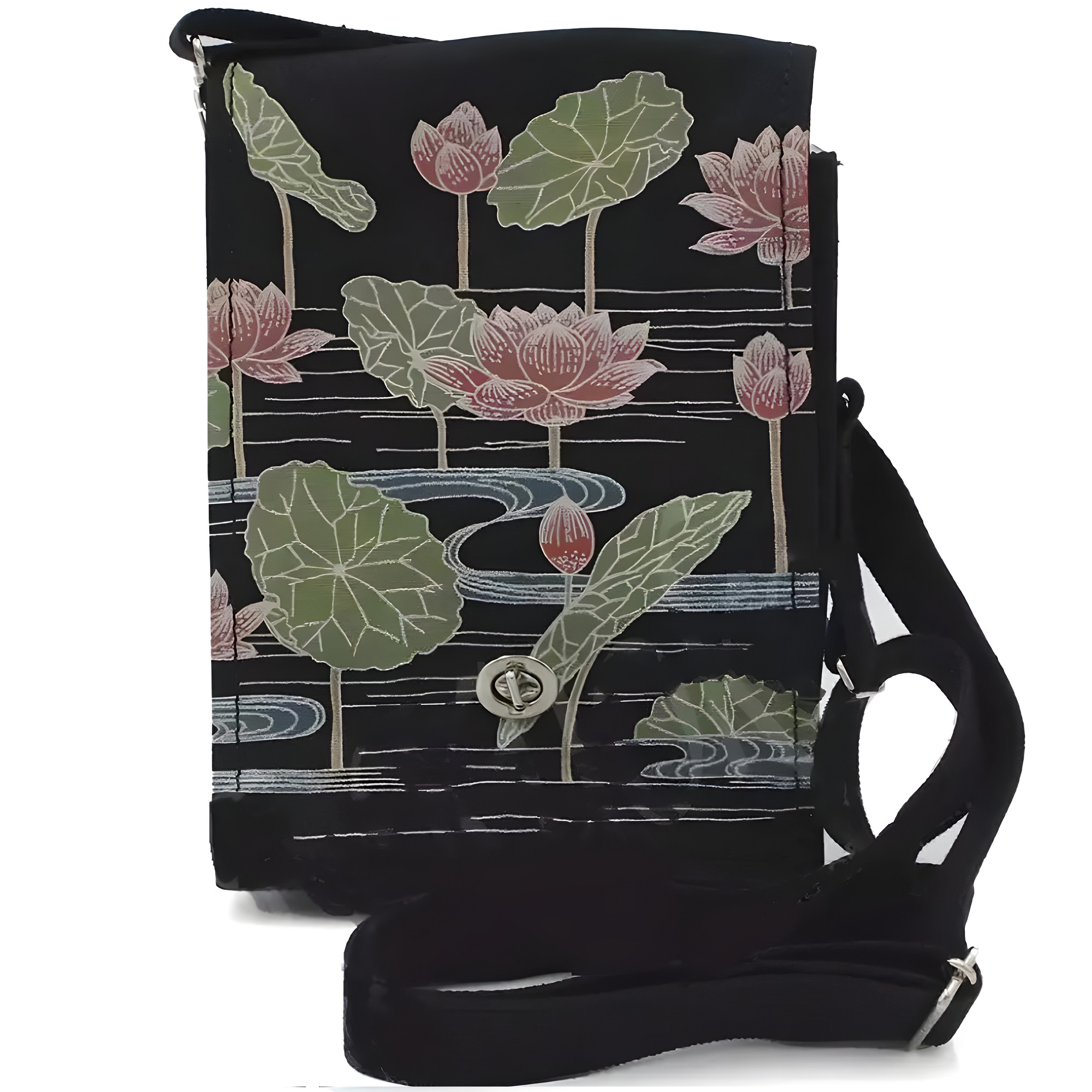 Diese edle Tasche mit kunstvollem Lotus-Motiv vereint zeitlose Eleganz mit praktischer Alltagstauglichkeit. Das Design verbindet eine klare Form mit der Symbolkraft der Lotusblüte – ein Zeichen für Reinheit, Harmonie und innere Stärke.