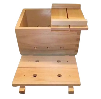 Die Außenmaße der Tofu-Presse betragen 170 mm x 120 mm x 88 mm und bieten somit den perfekten Rahmen für zwei Portionen frisch gepressten Tofus. Jedes Teil ist sorgfältig aus dem robusten und langlebigen Hinoki-Holz gefertigt, das in der japanischen Handwerkskunst weit verbreitet ist.