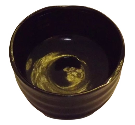 Der Matchawan „Kuro Nami“ vereint traditionelle Formgebung mit schlichter, ausdrucksstarker Eleganz. Der Name setzt sich aus den japanischen Begriffen kuro (Schwarz) und nami (Welle) zusammen – eine treffende Beschreibung für das Design dieser besonderen Teeschale.