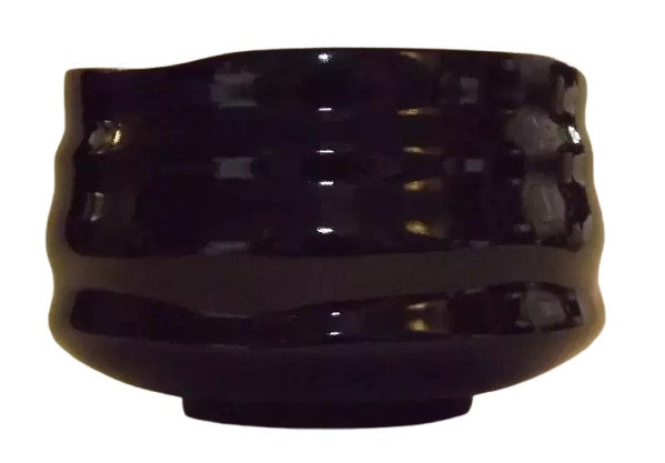 Matchawan „Kuro Nami“ – Schwarze Keramikschale mit wellenförmiger Silhouette
