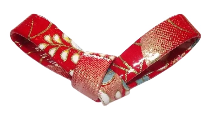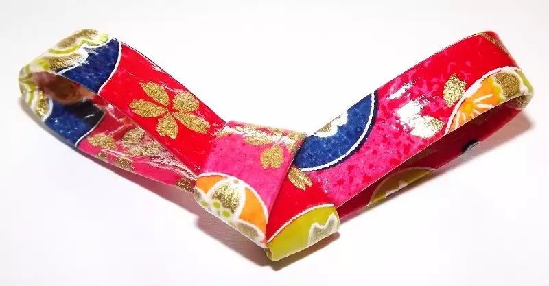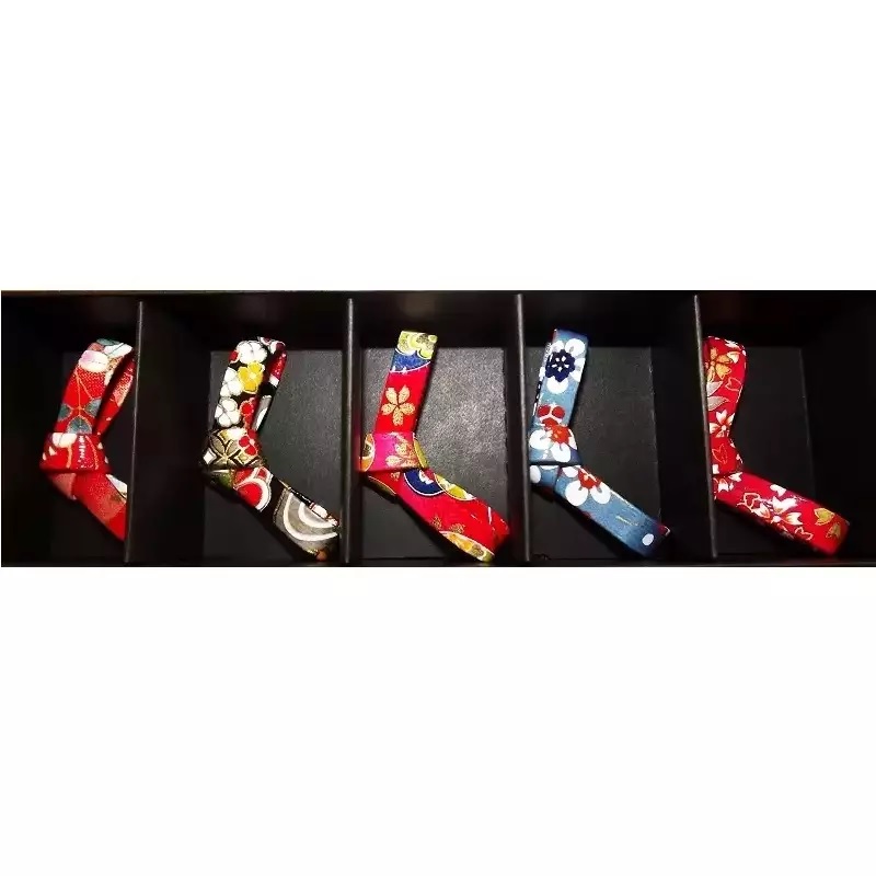 Dieses Set besteht aus fünf kunstvoll gefalteten Stäbchen Ablagen in Form eines Musubime (traditioneller japanischer Knoten), die aus original japanischem Washi-Papier gefertigt wurden.