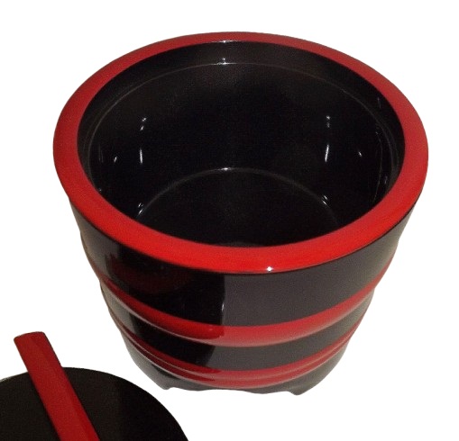 Dieses traditionelle Gefäß mit Lackfinish dient der authentischen Zubereitung und dem stilvollen Servieren von Udon- oder Sobanudeln. Es besteht aus einem lackierten Außenbehälter und einem herausnehmbaren Innentopf, in dem die frisch gekochten Nudeln angerichtet werden.