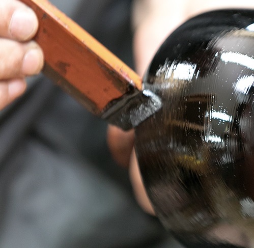 Anschließend folgt ein aufwändiger Lackierprozess mit Urushi, einem der edelsten Lacke der Welt.