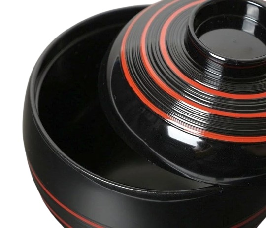 Traditionelles japanisches Lackhandwerk hat bis heute einen ganz besonderen Stellenwert. Diese Deckelschale ist inspiriert von klassischer Urushi-Verarbeitung: In Japan werden von Hand gedrechselte Holzschalen mit zahlreichen Schichten Lack überzogen – ein Prozess, der Sorgfalt, Zeit und Erfahrung erfordert.