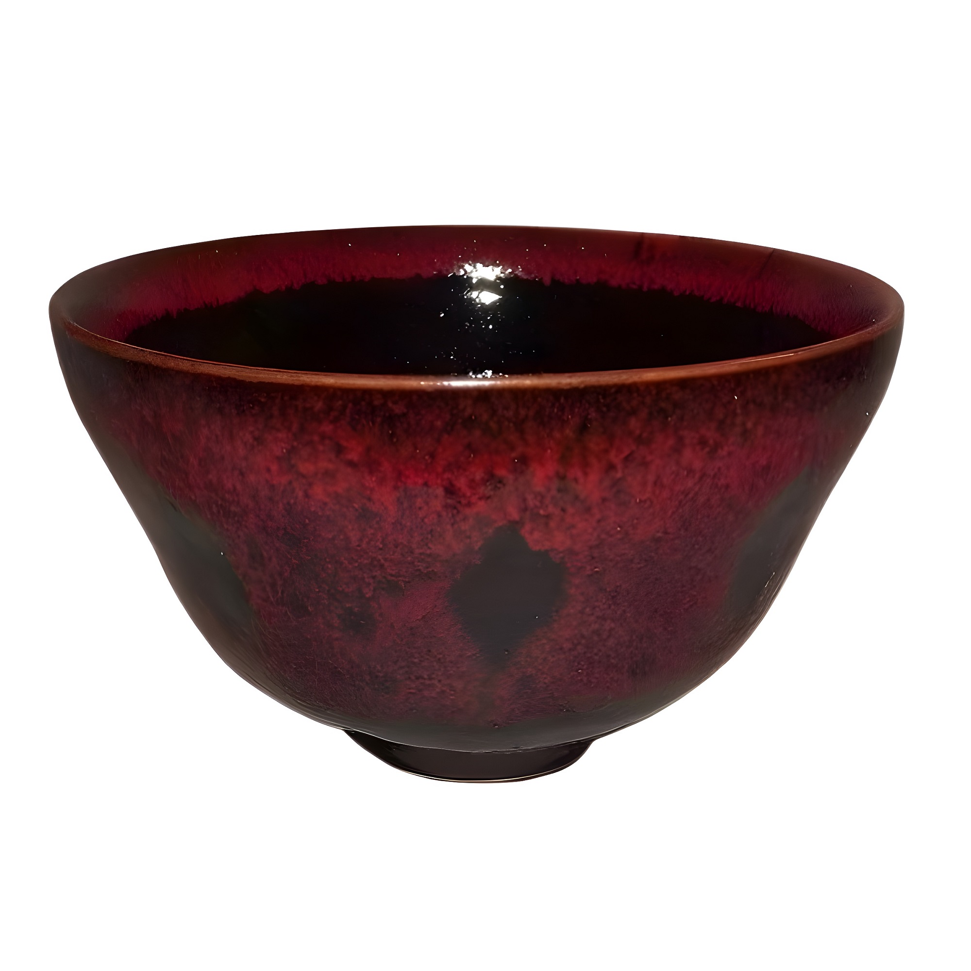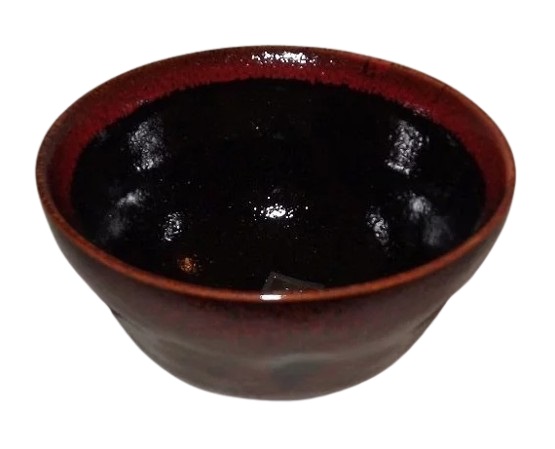 Besonders faszinierend ist der sanfte Verlauf der Glasur: Das Rot der Außenseite verläuft sanft fließend, wasserfallartig und bildet innen noch einen schmalen Rand. Das satte, lackglänzende Schwarz im Inneren verleiht der Schale eine beeindruckende Tiefe. Diese Farben geben jeder Schale eine einzigartige Optik – kein Stück gleicht dem anderen.