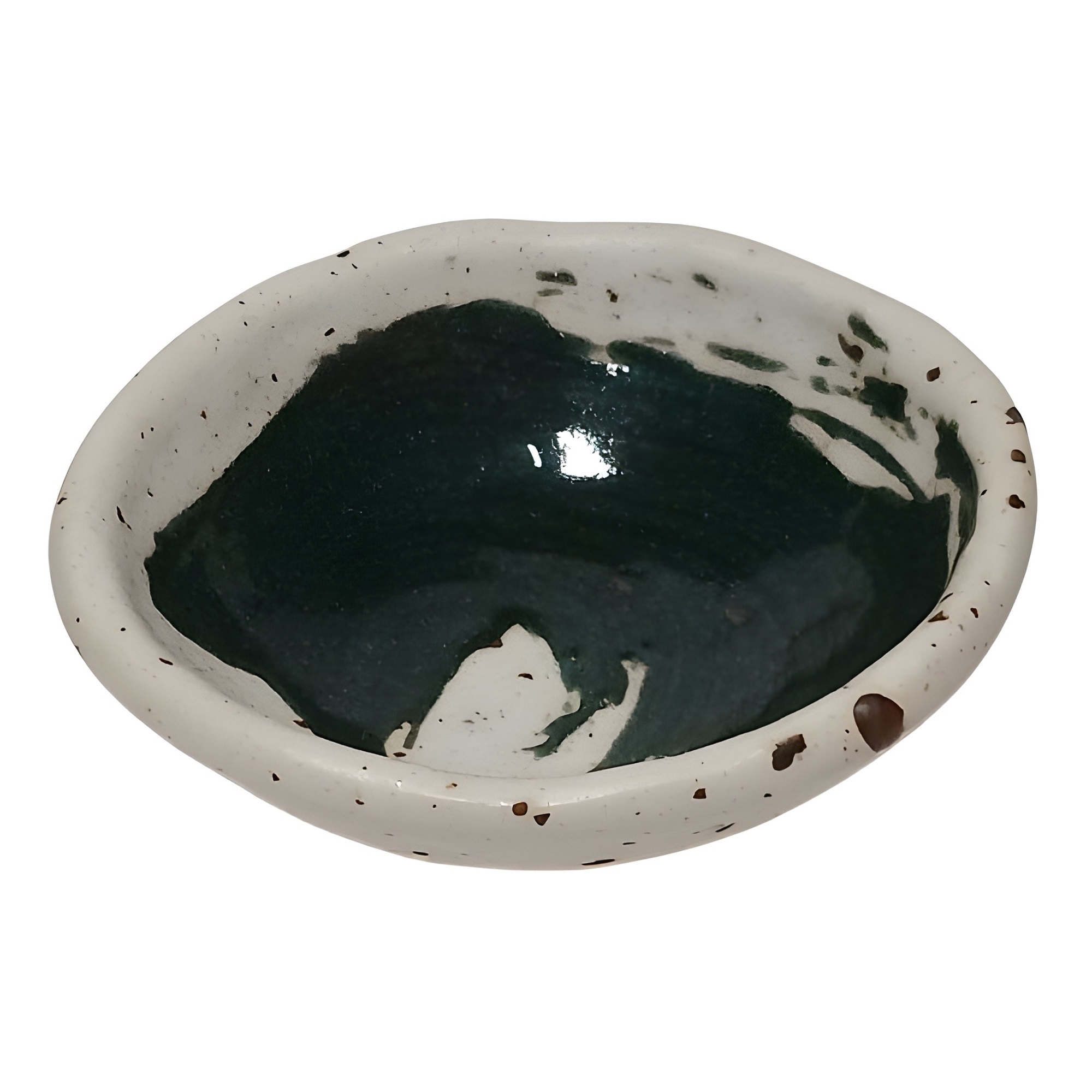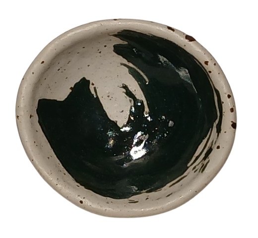 Dieses kleine Schälchen aus rauer Keramik vereint traditionelle Zurückhaltung mit einem markanten Dekor.