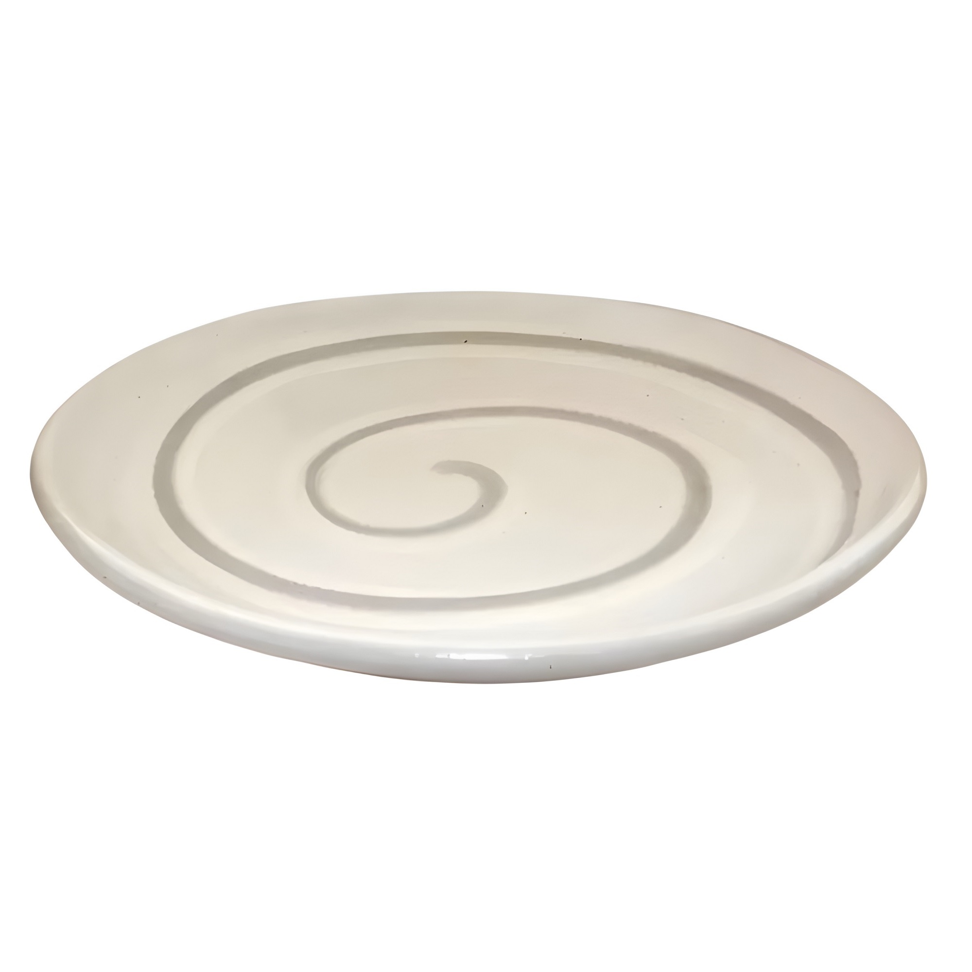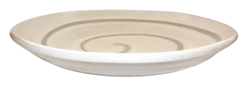 Die harmonische Kombination aus einer warmen, hell-beigen und einer sanft schimmernden hellgrauen Glasur verleiht der Schale eine ruhige, natürliche Ausstrahlung. Das fein eingearbeitete Spiral-Dekor (Kona) im Inneren erinnert an traditionelle japanische Muster und symbolisiert Bewegung, Harmonie und Kontinuität.